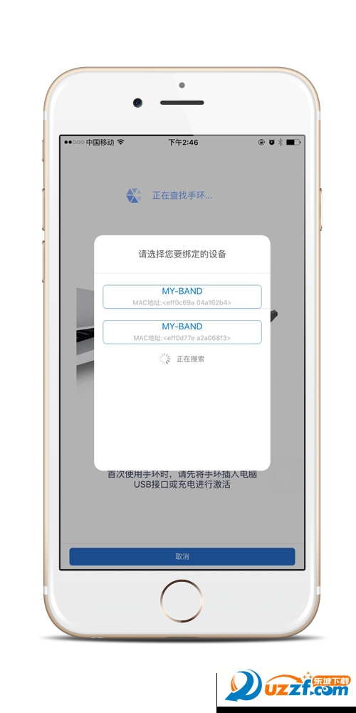 選擇魔樣2之后,手機將使用藍牙開始進行搜索周圍的魔樣手環(huán),這個時候請將手環(huán)放到手機附近,如果搜索到藍牙外設(shè)將會顯示如下界面