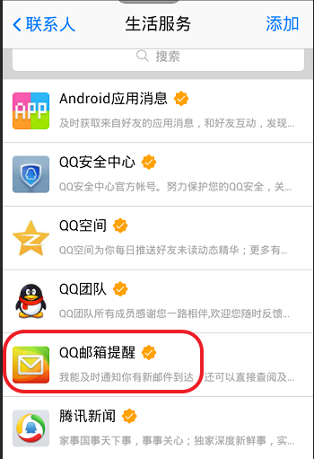 1、首先登錄到手機(jī)QQ,選擇聯(lián)系人選項(xiàng)卡,點(diǎn)擊進(jìn)入到“生活服務(wù)”,在生活服務(wù)里找到郵箱提醒并點(diǎn)擊進(jìn)入。
