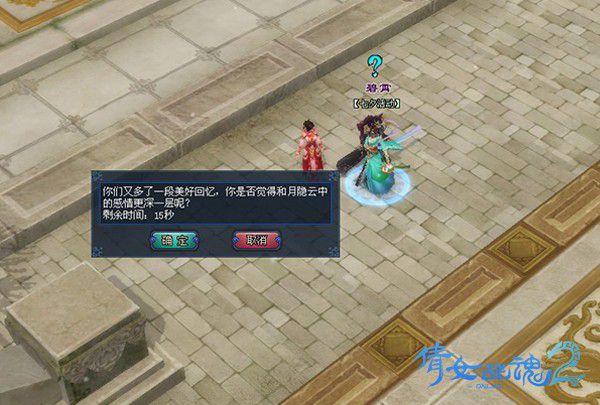 8.出迷宮后,請到NPC碧霄處交付任務(wù)。交完任務(wù)后,會有提示夫妻是否感情更加深厚,陌生男女是否覺得有緣的選項。