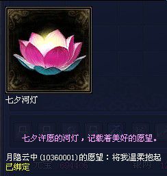3.若有合適的愿望,則男性玩家任務(wù)包裹里得到一盞七夕河燈,上面記錄了女性玩家的姓名、ID與愿望。