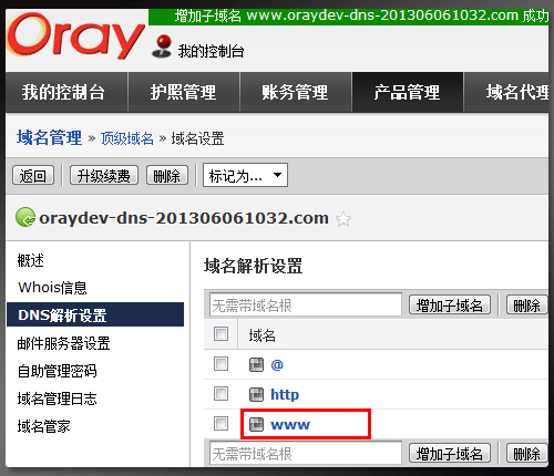 1、進(jìn)入[我的控制臺]-[產(chǎn)品管理]-[域名管理],點(diǎn)擊域名根。