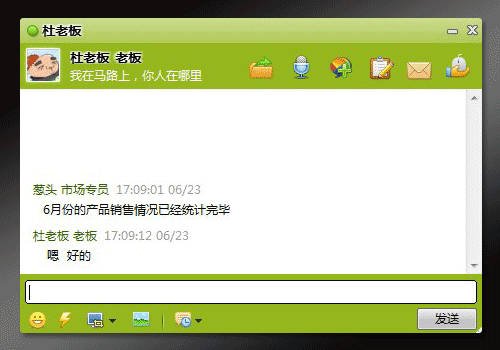 在聊天會話窗口可直接進(jìn)行即時(shí)交流。