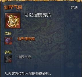 需要20個(gè)仙界氣息合成一個(gè)仙界遺物箱