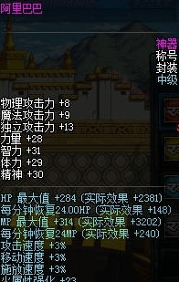 DNF阿里巴巴稱號屬性: