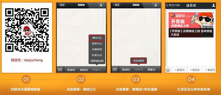 關注道聚城微信號,通過菜單中的“微商店”>“折扣道具”成功購買指定游戲的任意道具,并且綁定自己的QQ帳號,每周都有機會被幸運女神砸中“免單”哦。