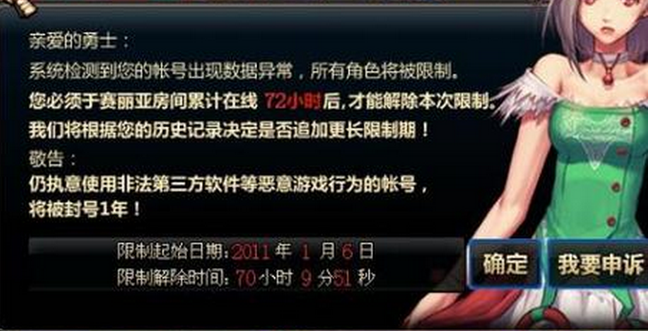 相信很多玩家都有被關(guān)禁閉,2小時(shí)的,72小時(shí)的,各種都有,TX把你號(hào)封了,接著等你上去的時(shí)候,發(fā)現(xiàn)還要禁閉72小時(shí),你會(huì)不會(huì)莫名其妙的氣憤。應(yīng)該好多人都跟我一樣,被禁閉72小時(shí)。我相信大多數(shù)人都是因?yàn)榘岽u,而被72小時(shí)。別看這72小時(shí)在線,真的是72小時(shí)嗎, 不掛不知道,一掛嚇跳,一小時(shí)一看,兩小時(shí)一斷。白天精神崩潰,夜里無法入睡。對(duì)于我們工作也好學(xué)生也好,一天上個(gè)3-4小時(shí)左右算不錯(cuò)的了。
