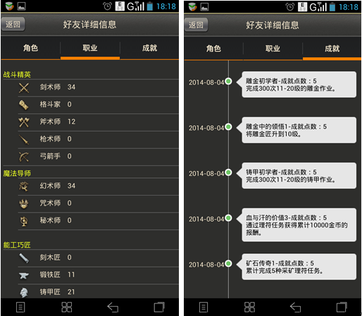 1、查看自己和好友在游戲內(nèi)的角色、職業(yè)、成就信息
