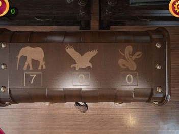 6.現(xiàn)在大象的數(shù)量一共是7只,小鳥1只,蛇兩只。這時我們點擊大寶箱,把數(shù)字對應(yīng)動物的圖標(biāo),填在寶箱上面,寶箱打開后,可以拿到鑰匙。