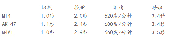 從速度上來說。M14有著極其快速的換彈速度,射速方面,M14介于AK-47和M4A1之間,重量與AK-47相當(dāng)。較低的射速保證了M14有著對(duì)彈道較好的控制能力。