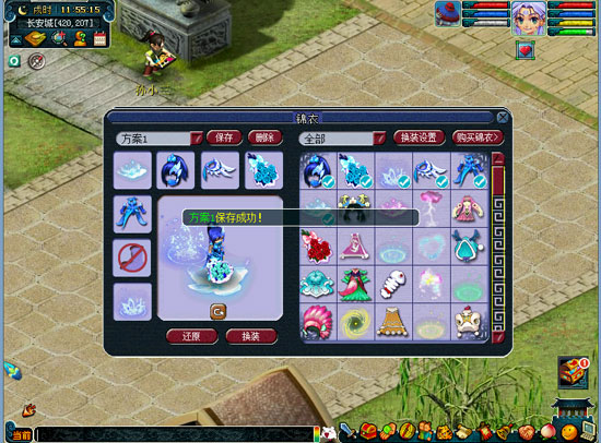 打開錦衣欄,點(diǎn)擊左上角“換裝方案”的下拉列表,打開自動(dòng)換裝的衣柜列表: