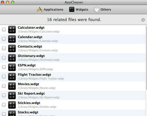 除此之外,您也可以清理在Dashboard 中不會(huì)用到的Widgets ,AppCleaner 會(huì)列出個(gè)列表來(lái),我們可以清理掉您平常不怎么使用的Widgets。