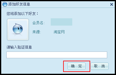 如所添加好友需身份驗(yàn)證,請(qǐng)?zhí)顚?xiě)驗(yàn)證信息,然后點(diǎn)擊“確定”,發(fā)送給對(duì)方: