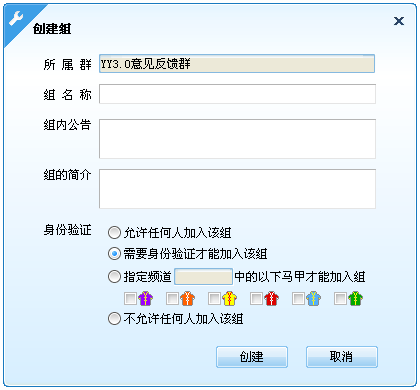 新建組窗口說明: