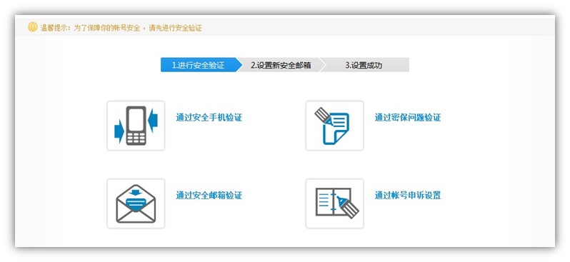 1、登陸安全中心——帳號保護——安全郵箱修改;