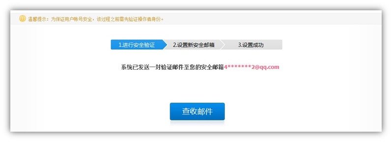 驗證成功后,就可以重新設(shè)置新的安全郵箱了