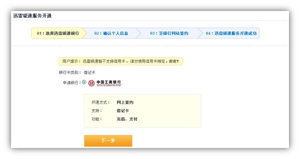 2、確認您要綁定的銀行卡開戶信息與填寫提交的信息一致,否則將無法開通迅雷銀通服務(wù)。