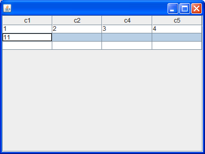 下面的例子將JTable做為一個輸入數(shù)據(jù)的文本框,當(dāng)雙擊擊每行第一個格子時,自動添加一個空白行