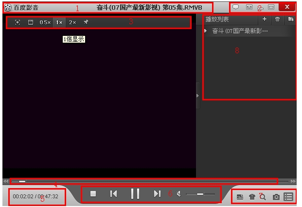 1:標(biāo)題區(qū):顯示正在播放的文件的文件名。