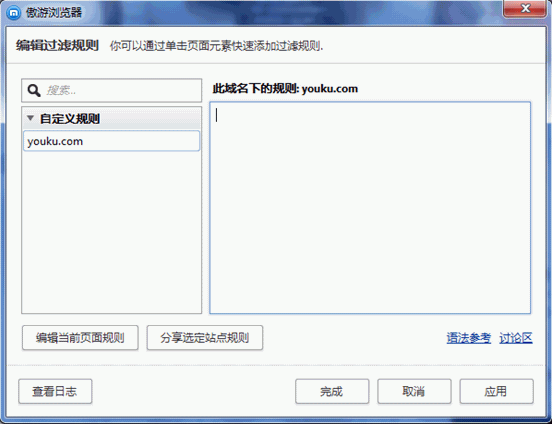 然后在彈出來的對(duì)話框中清除youku.com下的所有規(guī)則,使其保持為空:
