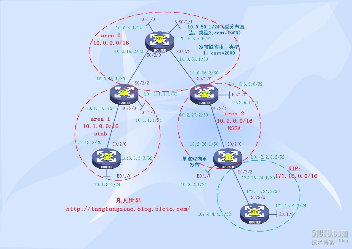 關(guān)于本文中所涉及的理論及OSPF的相關(guān)細(xì)節(jié)分析,請(qǐng)參考OSPF多區(qū)域數(shù)據(jù)流分析http://tangfangxiao.blog.51cto.com/2116646/632997