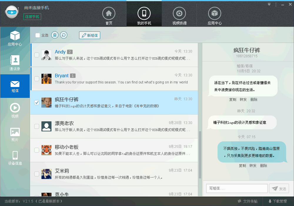 進入“我的手機-短信”,在電腦上也能給好友發(fā)短信。