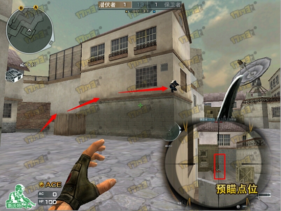 下面介紹給CFer的這個點(diǎn)位風(fēng)ず夏個人覺得非常妖嬈,不過這個點(diǎn)位要打好有兩個前提:1.你要是個狙擊手;2.控制好你和窗口的距離。如圖4所示的預(yù)瞄點(diǎn),只要防守方不注意自己的走位就很容易成為槍下魂。