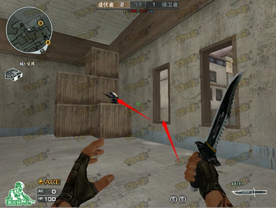 最后一個點(diǎn)位位于B倉庫,是防守方狙擊手架匪家的常用點(diǎn)位。CFer根據(jù)圖中的示方式利用跳躍就能來到這個點(diǎn)位,不過風(fēng)ず夏覺得這個點(diǎn)位需要第二時間拉出,不然你就會被對手丟過來的手雷炸飛天。