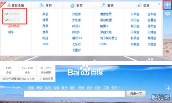 添加導(dǎo)航網(wǎng)站的方法:點擊百度首頁右側(cè)的“添加”按鈕。然后在打開的窗口中點擊“我的導(dǎo)航”和“城市天氣”兩項內(nèi)容,則這兩項內(nèi)容被添加到當(dāng)前百度首頁當(dāng)中。如果此時發(fā)現(xiàn)導(dǎo)航欄部分消失了,則通過點擊百度網(wǎng)頁窗口右上角的“新版首頁”按鈕將頁面切換至新版。