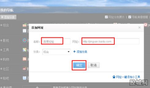 在打開的“添加網(wǎng)址”窗口中,輸入名稱和網(wǎng)址,然后點擊“確定”按鈕。