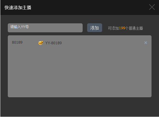 Step 2:輸入要添加的主播YY號,點擊添加