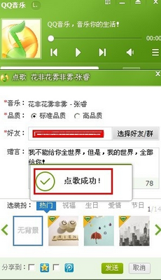 以上就是qq音樂2015點(diǎn)歌給好友使用全部內(nèi)容,大家趕緊點(diǎn)首歌曲送給好友閨蜜吧。
