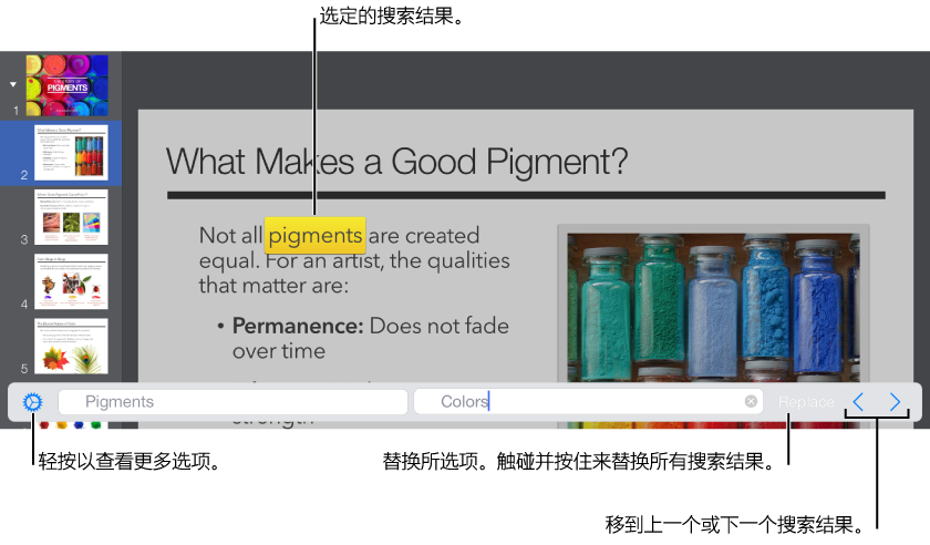 您可以搜索特定字詞、短語、數(shù)字和字符,并且自動將搜索結(jié)果替換為指定的新內(nèi)容。所有內(nèi)容(包括跳過的幻燈片上和演講者注釋中的內(nèi)容)都將包括在搜索中。