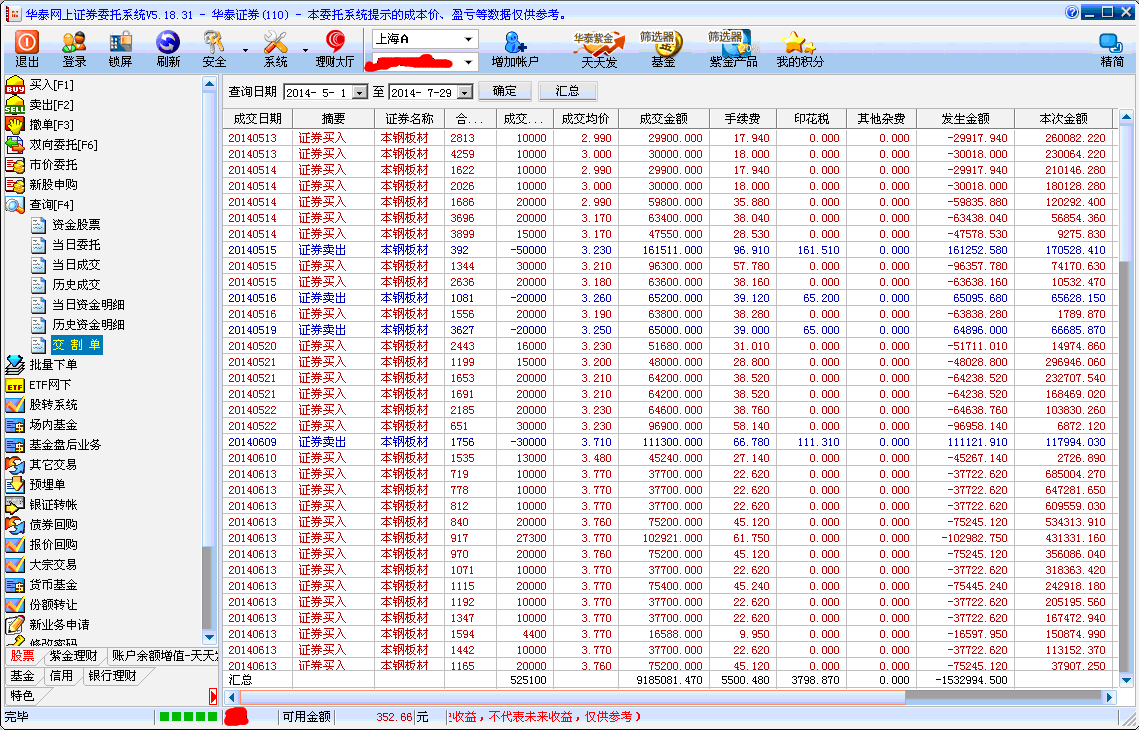 當(dāng)日資金名細(xì)