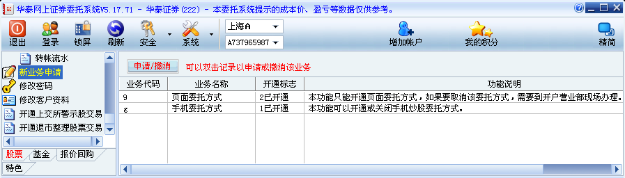 *新業(yè)務(wù)申請(qǐng):可以開(kāi)通手機(jī)證券: