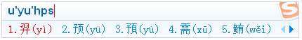U模式主要用來輸入不會讀(不知道拼音)的字等。在按下u鍵后,輸入筆畫拼音首字母或者組成部分拼音,即可得到您想要的字。