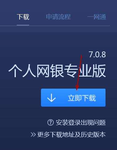 進(jìn)入個人網(wǎng)銀專業(yè)版下載頁面,點擊“立即下載”,下載個人銀行專業(yè)版安裝。