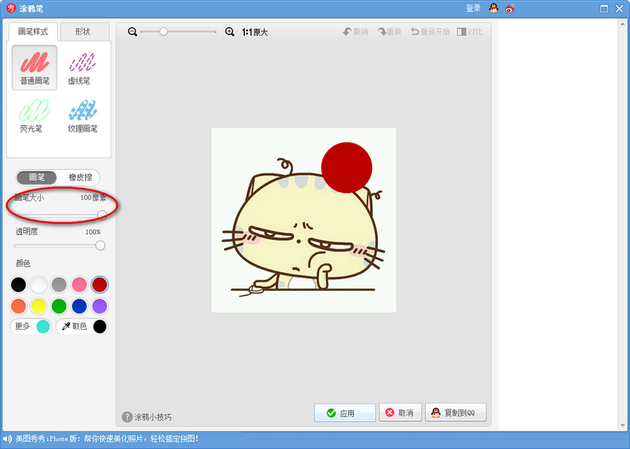 步驟二:點擊涂鴉,然后畫筆,在改變畫筆大小(100),在改變顏色,效果如圖