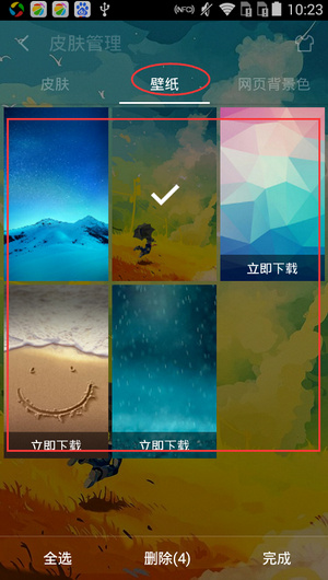 第三,長按后進(jìn)入【皮膚管理】,這里有好多選擇,【皮膚】、【壁紙】、【網(wǎng)頁背景色】