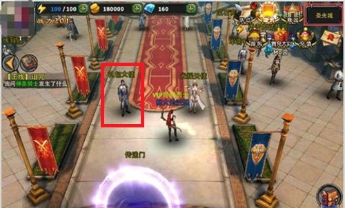 來到圣光城之后,點(diǎn)擊中間傳送門的上方,就能找到【禮包大使】了。