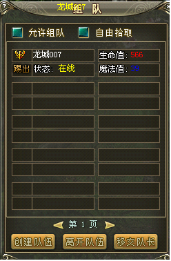 隊(duì)伍的成員包括隊(duì)長(zhǎng),最多不超過(guò)10位。隊(duì)長(zhǎng)有是否允許自由拾取的權(quán)利。