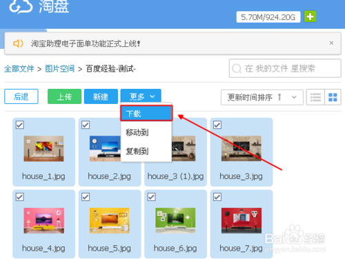 進(jìn)入圖片空間之后,找到需要下載的文件、或圖片內(nèi)容,可選擇整個(gè)文件夾下載,或者在文件夾內(nèi)勾選需要下載的圖片。然后點(diǎn)擊【 更多--下載 】