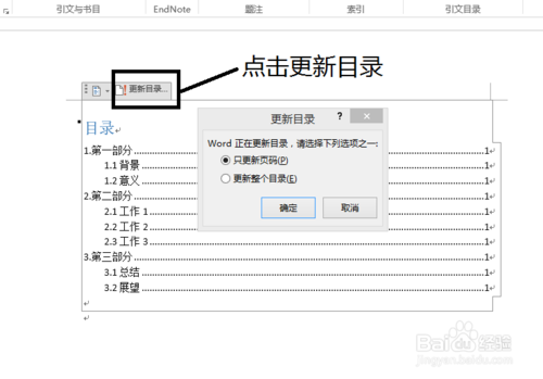 當(dāng)標(biāo)題發(fā)生變化時(shí),可以選中目錄,點(diǎn)擊“更新目錄”按鈕,選擇“更新整個(gè)目錄”,這樣目錄就會(huì)自動(dòng)更新了。