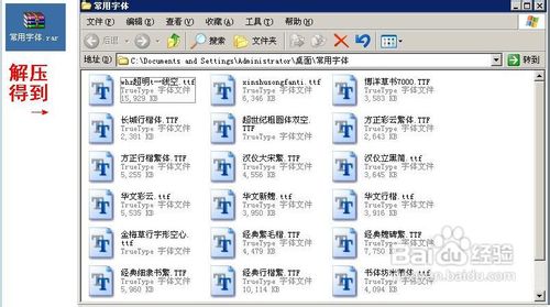 將下載后的字體解壓(一般下載后都是壓縮包,必須解壓后方能使用),會得到擴(kuò)展名為ttf的字體文件。