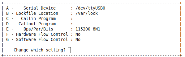 選擇“Serial port setup”,出現(xiàn)串口配置菜單: