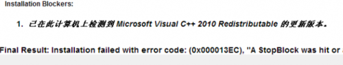 VC++運行庫不能成功安裝,而 VC++運行庫不能安裝的原因是系統(tǒng)中已經(jīng)安裝了VC++運行庫,并且版本等于或高于要安裝的版本(圖片是官方的解釋頁面)。