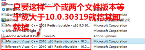 找到相應的 Microsoft Visual C++ 2010 x86 redistribuable 和 Microsoft Visual C++ 2010 x64 redistribuable(如果有)文件,查看它們的版本,確認后卸載。