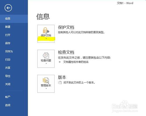 成功之后,‘保護(hù)文檔‘那一欄背景會變,證明加密成功。單擊返回箭頭返回,之后再次打開文檔,會先讓輸入密碼才可以打開。