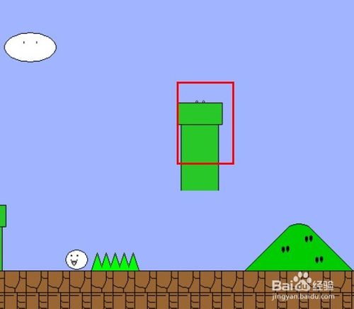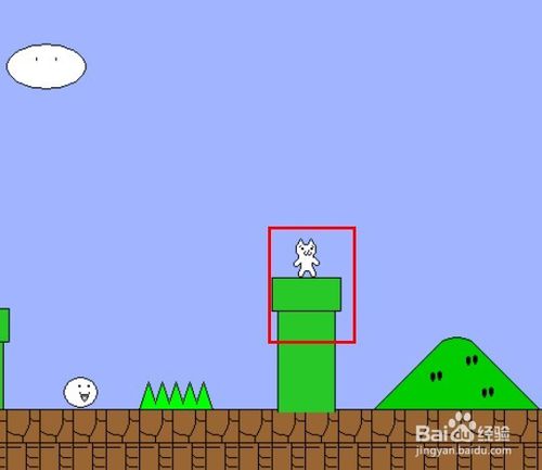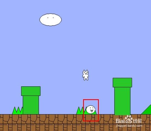 紅色框中的這個白色小怪是踩不扁的,踩在它身上可以把貓版瑪麗彈到更高的地方去。