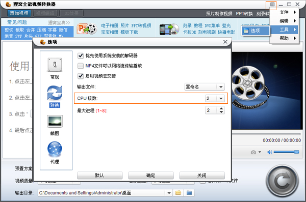 如果你的電腦是雙核的,軟件默認(rèn)雙核加速,如果是多核加速,請進入菜單選項里面開啟多核加速功能,轉(zhuǎn)換更快!