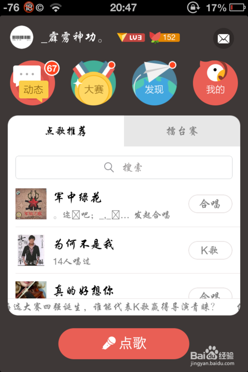 打開此軟件,首頁如圖所示,最下方有點(diǎn)歌按鈕。